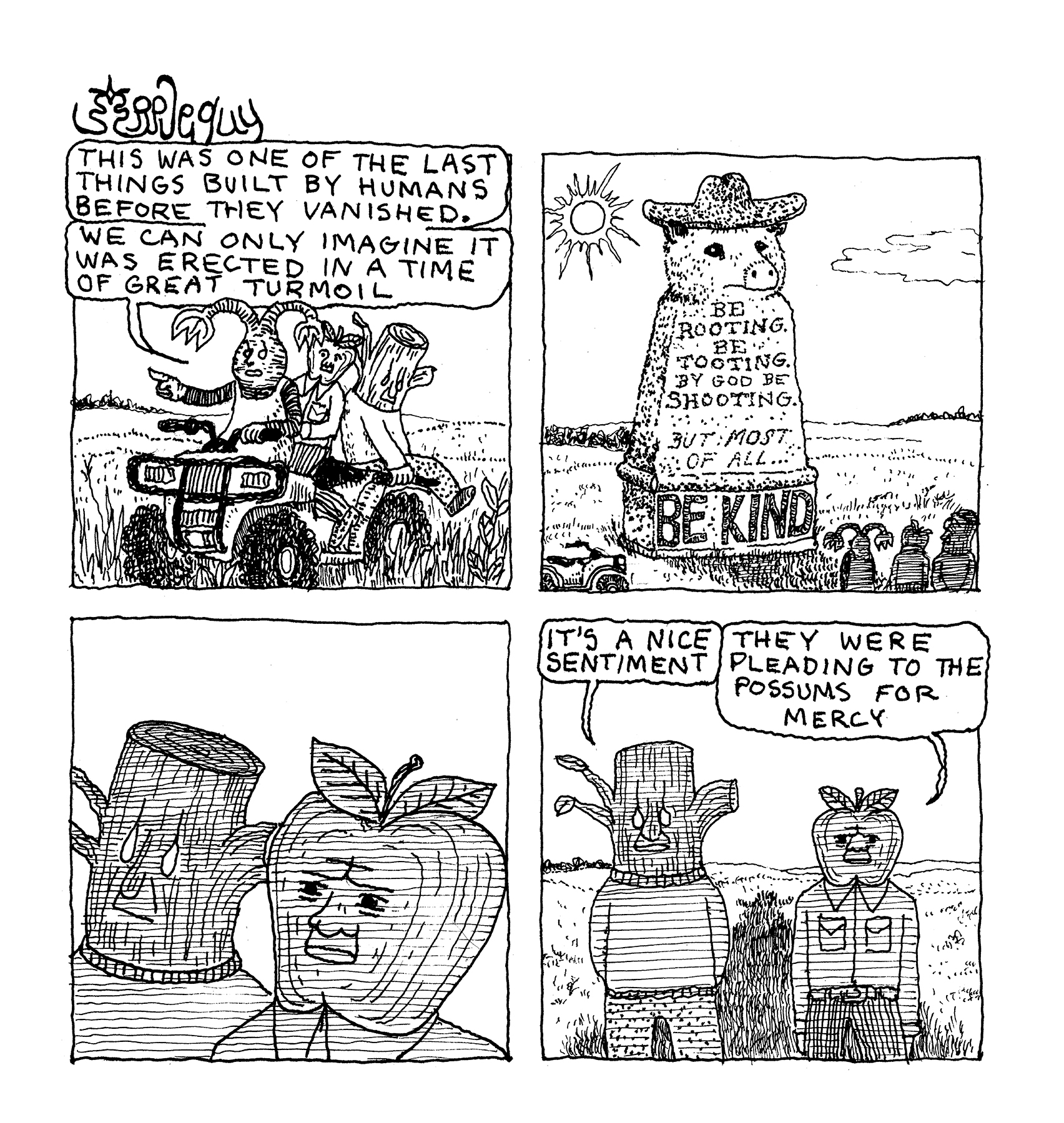 Cartoonist Cedar Van Tassel has created the great new comic strip of the modern era: a perfect jewel in an underappreciated genre in the comics field—the serial buddy comedy. Using rural agriculture as a stepping-off point, he tackles climate change, small-town politics, psychedelics, mysticism, and friendship.