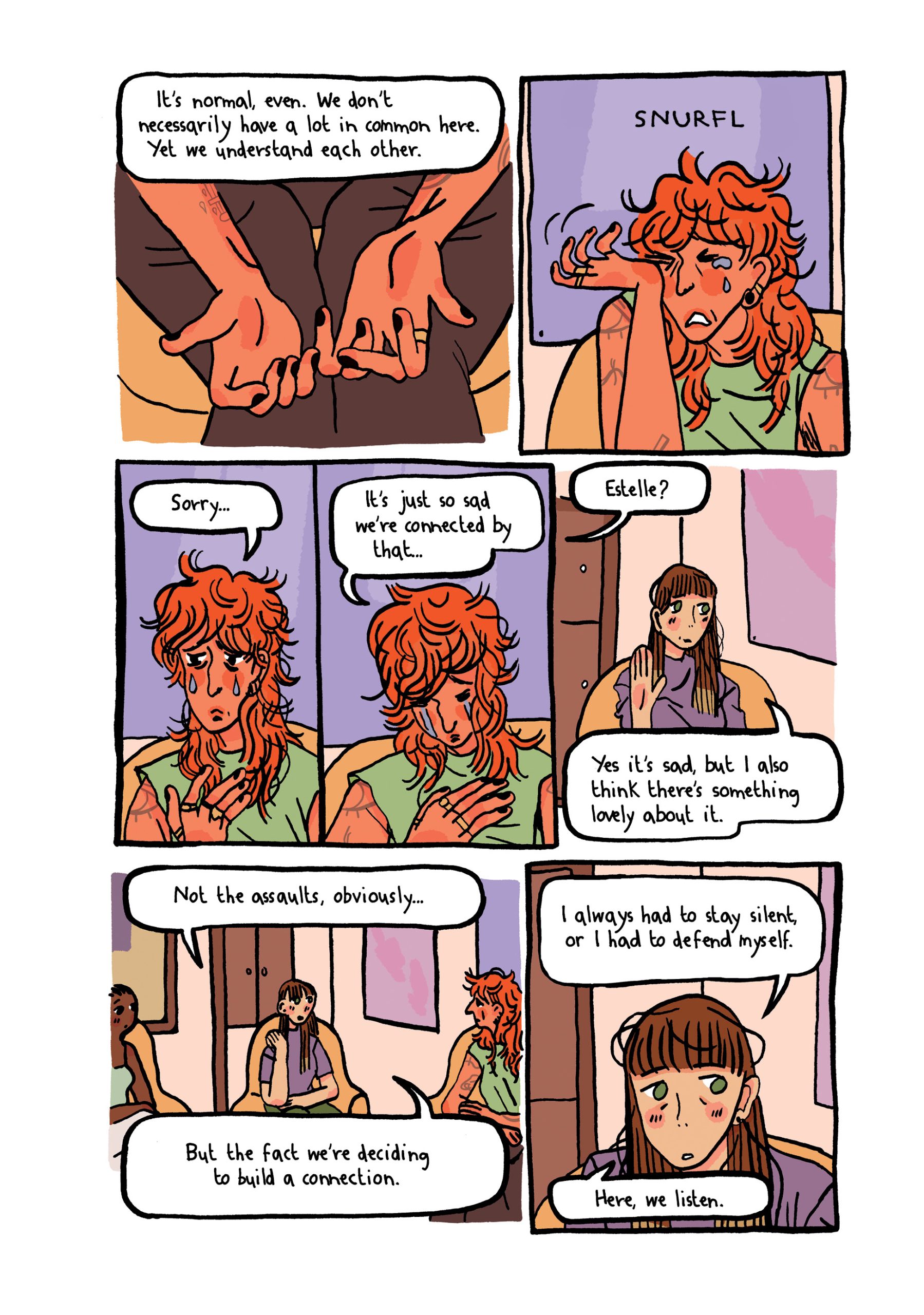 Clemence is angry, and it’s driving her mad. It’s not that life isn’t good. In fact, life is pretty great: movie nights with her besties, trading Tinder horror stories, inking folks day in and day out as a tattoo artist. She’s even got herself the perfect new girlfriend, but not even the overwhelming atmosphere of love in her life can shake the specter of her trauma loose. Processing the aftermath of her sexual assault is no easy feat—particularly when life still has so much to offer.Â