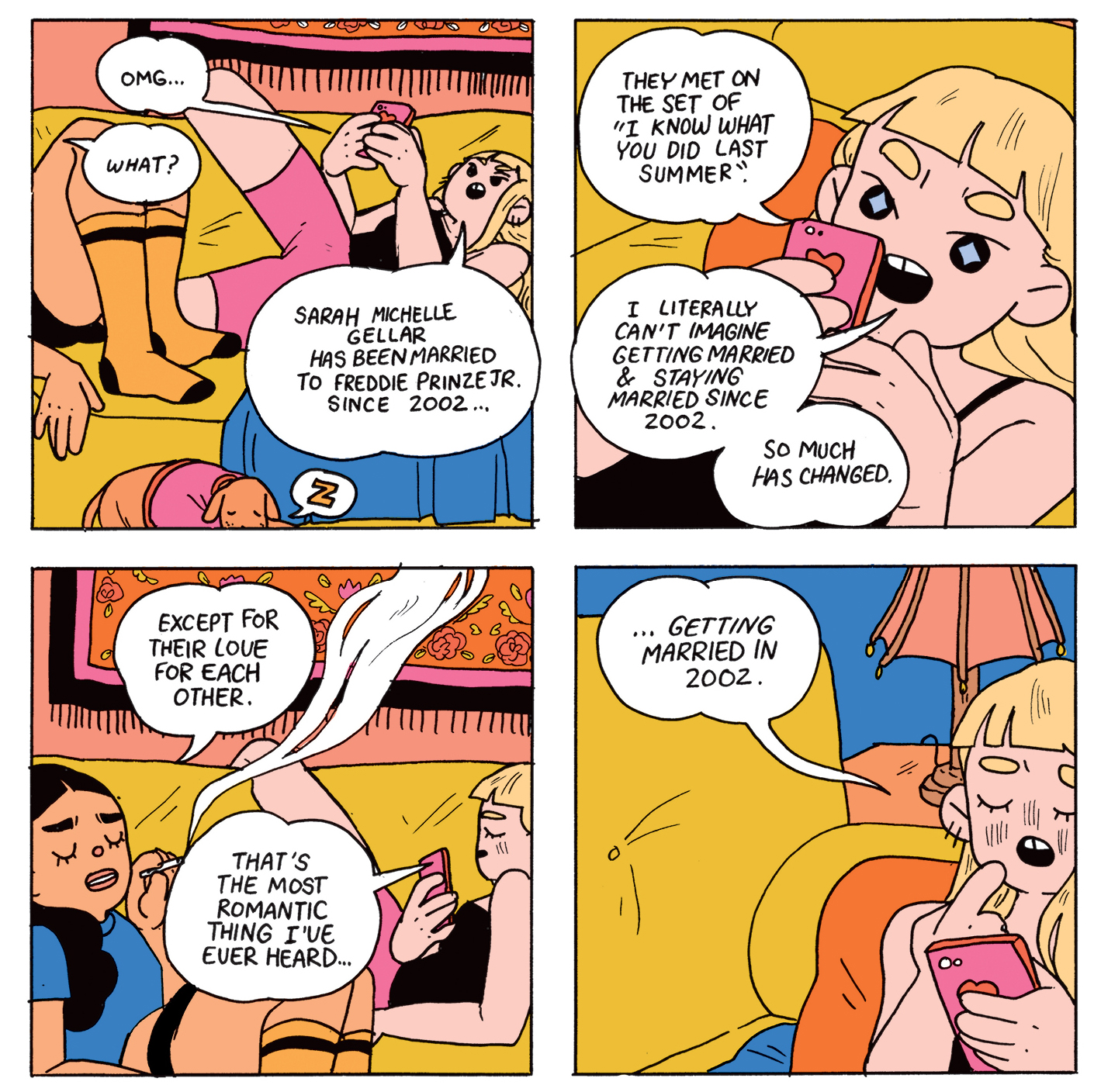 “Girl Juice is the funniest comic I’ve read in ages. It takes me back to being 20, surrounded by roommates whose dildos are in the kitchen sink and whose dogs are the ones paying their rent. You can tell that this book is not only about girls, but is written for them. I wish more comics were like it.” —Caroline Cash, cartoonist of PeePeePooPoo