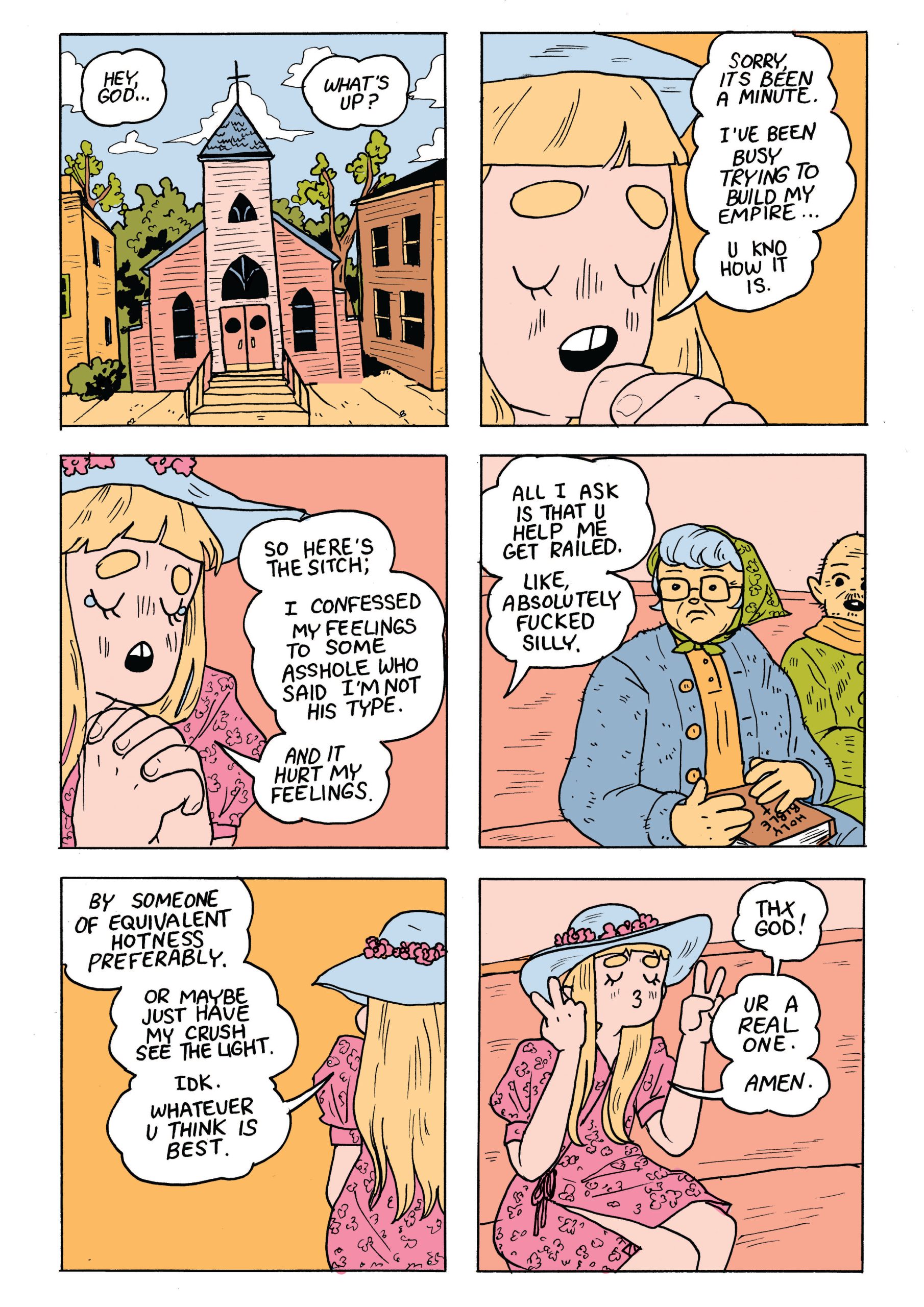 “Benji Nate’s slice-of-life-but-funnier-and-grosser-than-usual Girl Juice illustrates the beautiful camaraderie that can only be built by being in close proximity, annoying, and horny to one another on a long-term basis. Frankly, I’d be scared to encounter any of these characters at a party, knowing what I now know about their sexual secrets.” —Rebecca Kirby, creator of BEEEEFF!! and BIG MILK