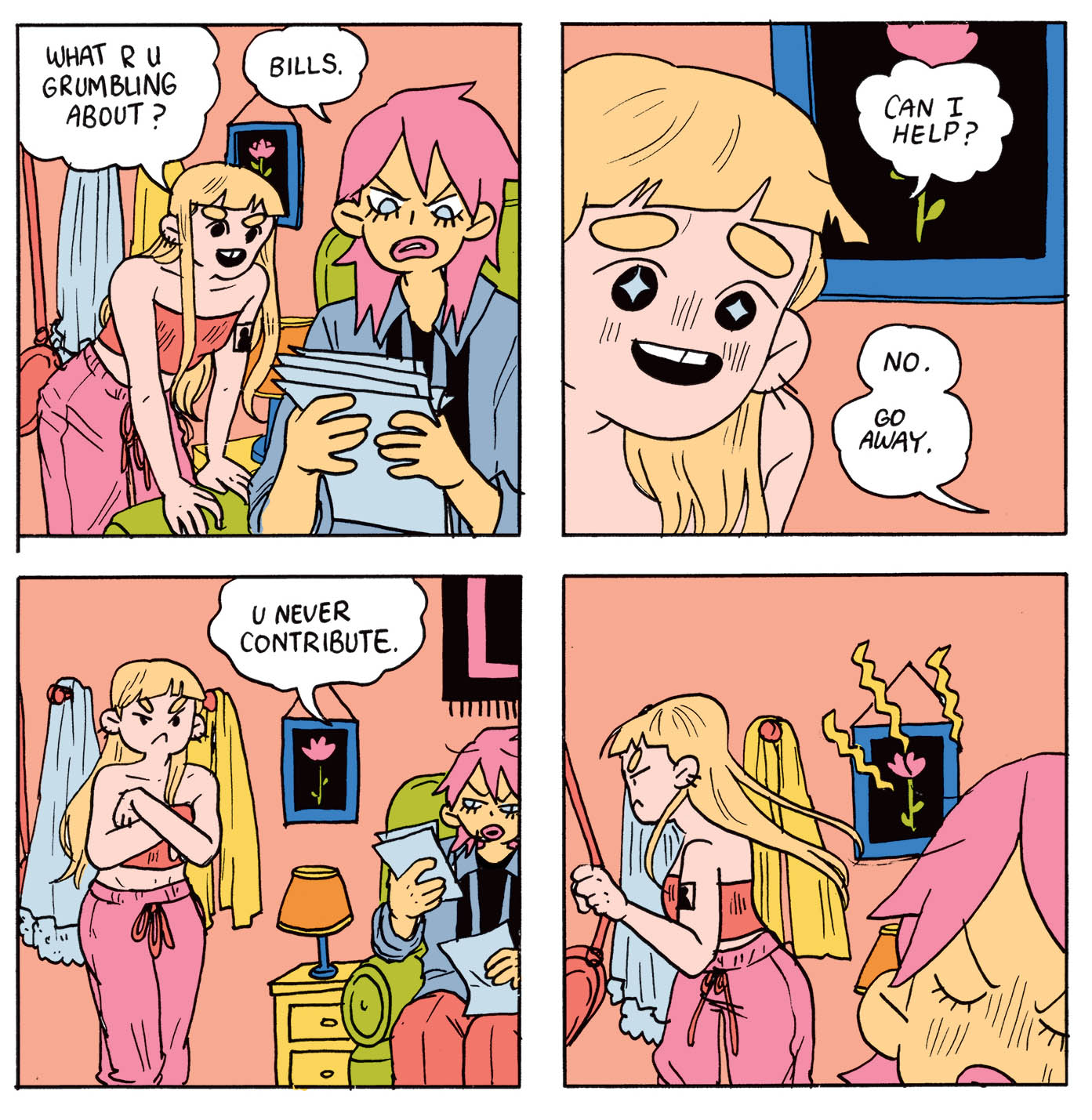 "Tallulah, Sadie, Nana and Bunny live together in the chaotic, colorful, maybe-haunted Girl Juice House, where they learn that “U don’t have to seek approval from ur roomies to make big silly life decisions” — but sometimes you do." —New York Times