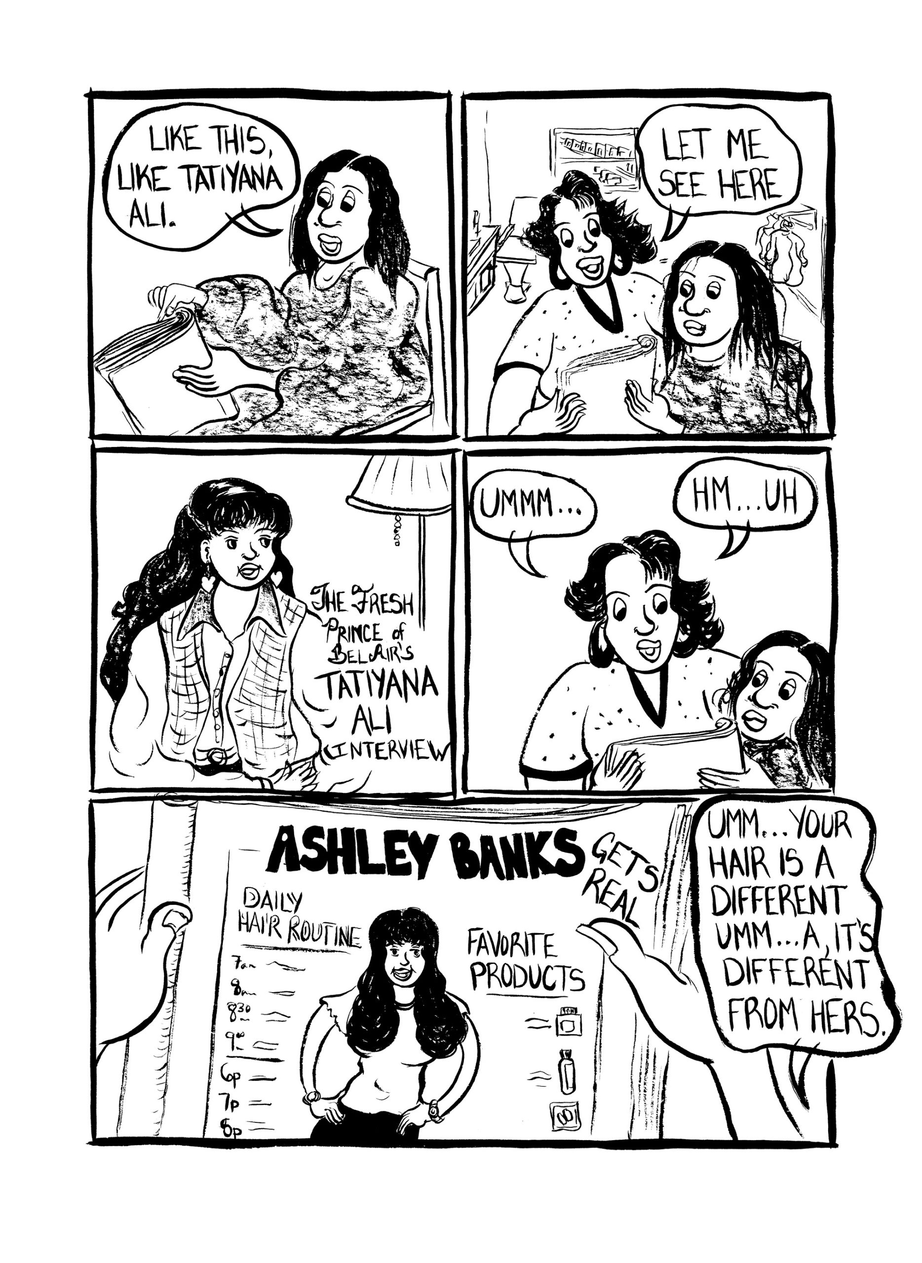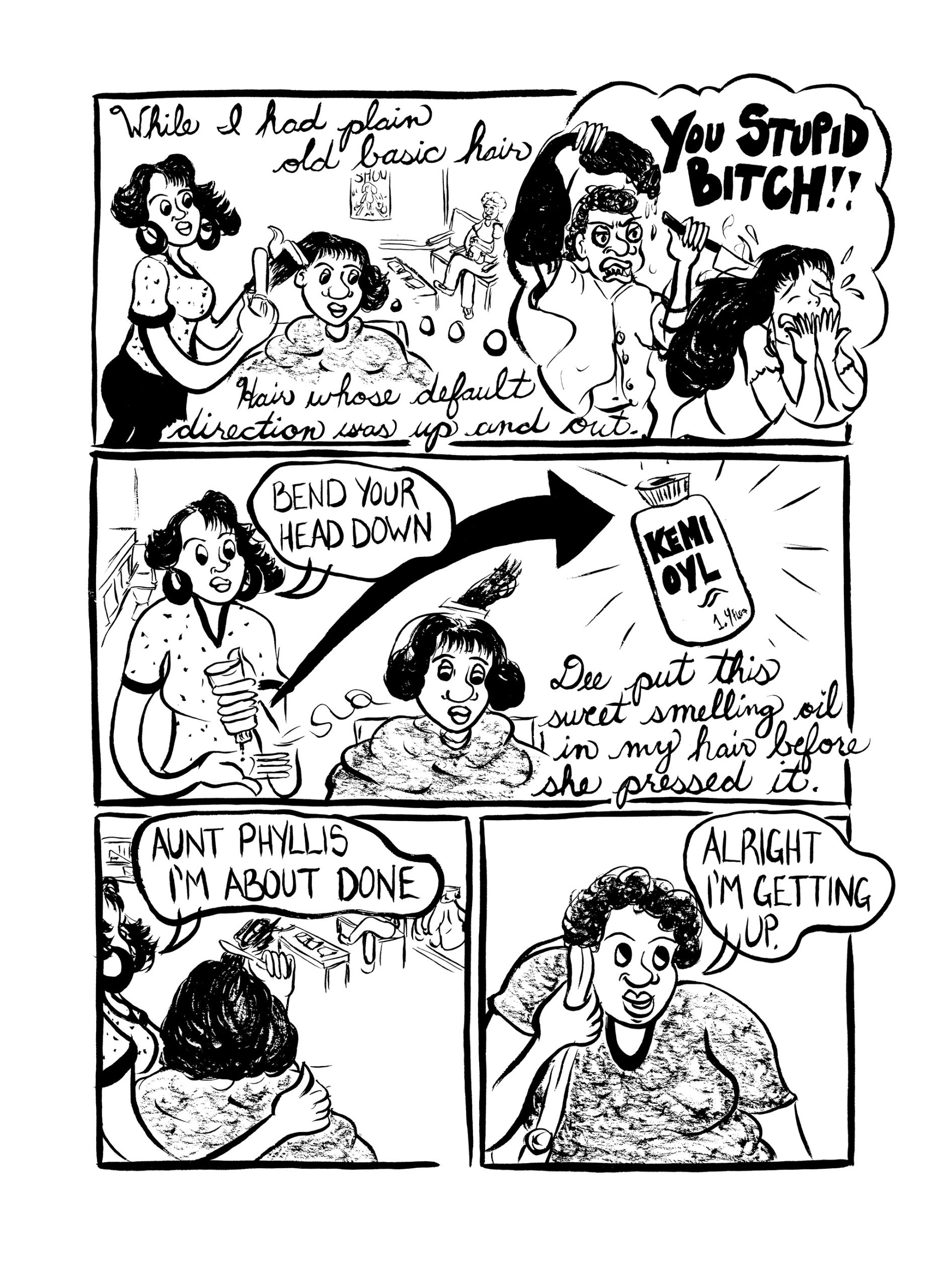 “[A] exhilarating collection...All of the stories in [Hot Comb] confront the attitudes inscribed in the commonplace language of black hair that is wild, untamed, and raw in its natural state, and yet so fragile when fixed that it can be undone by a drop of water.”–The Comics Journal