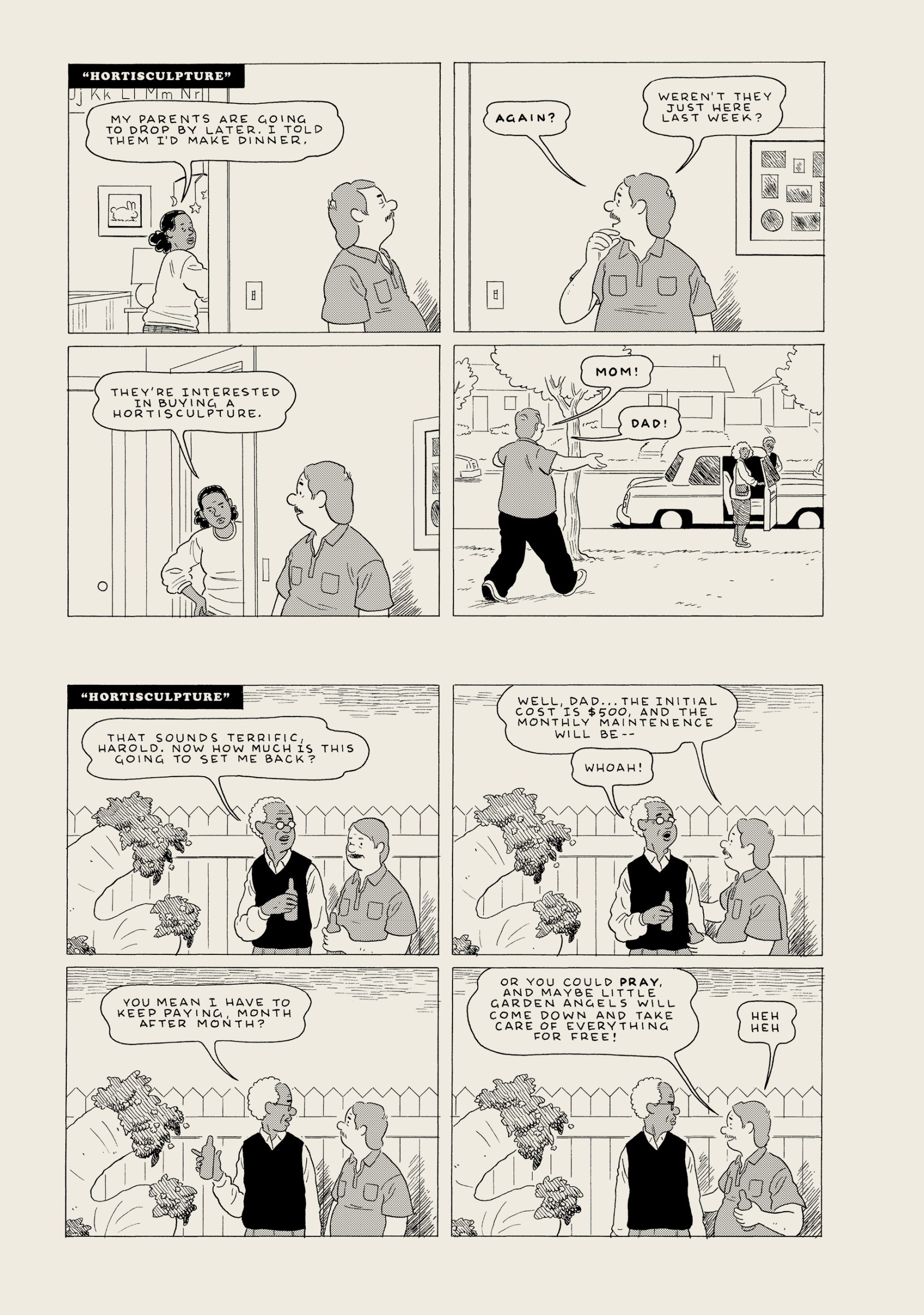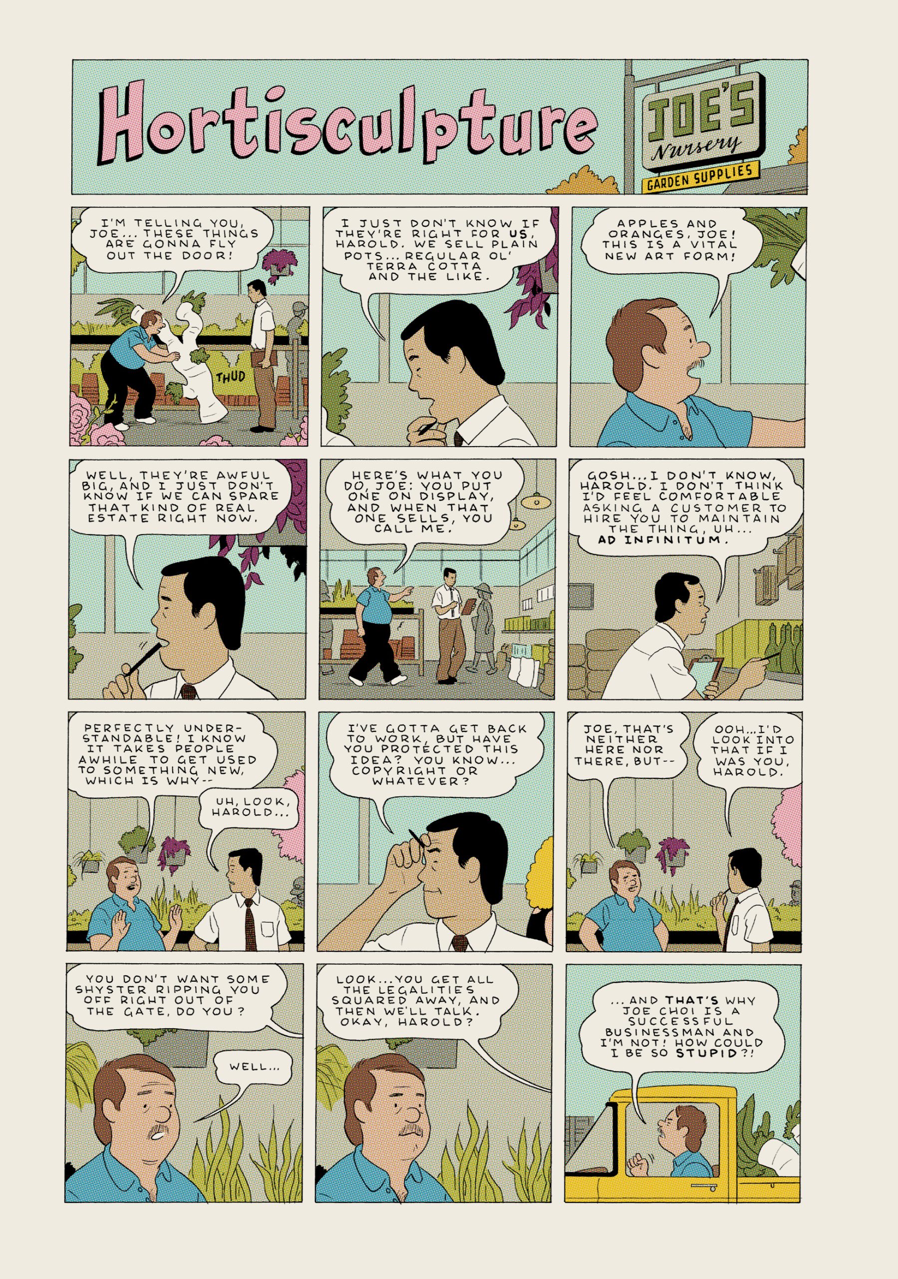 “Amber Sweet” shows the disastrous impact of mistaken identity in a hyper-connected world; “A Brief History of the Art Form Known as Hortisculpture” details the invention and destruction of a vital new art form in short comic strips; “Translated, from the Japanese” is a lush, full-color display of storytelling through still images; the title story, “Killing and Dying”, centers on parenthood, mortality, and stand-up comedy. In six interconnected, darkly funny stories, Tomine forms a quietly moving portrait of contemporary life.