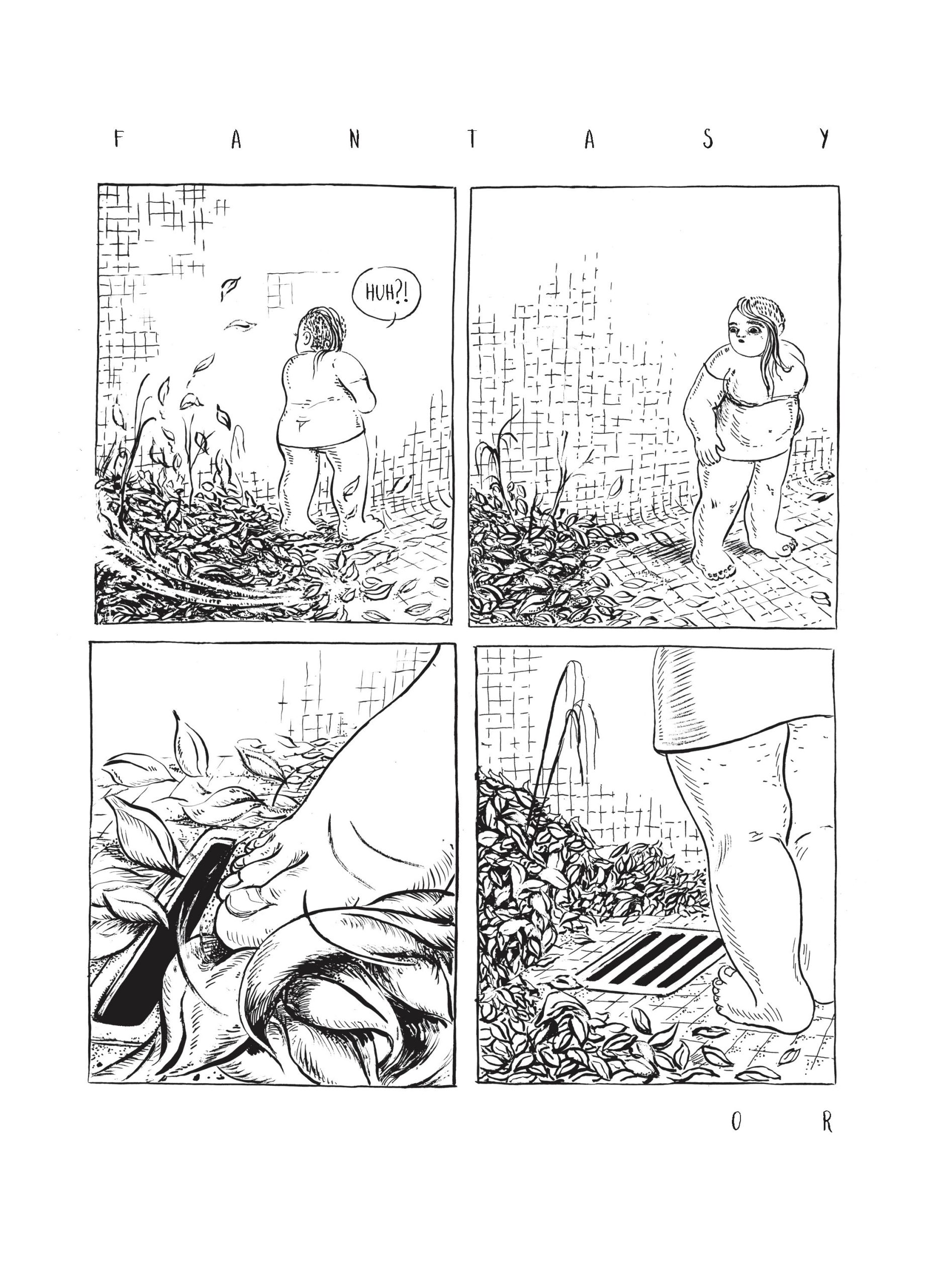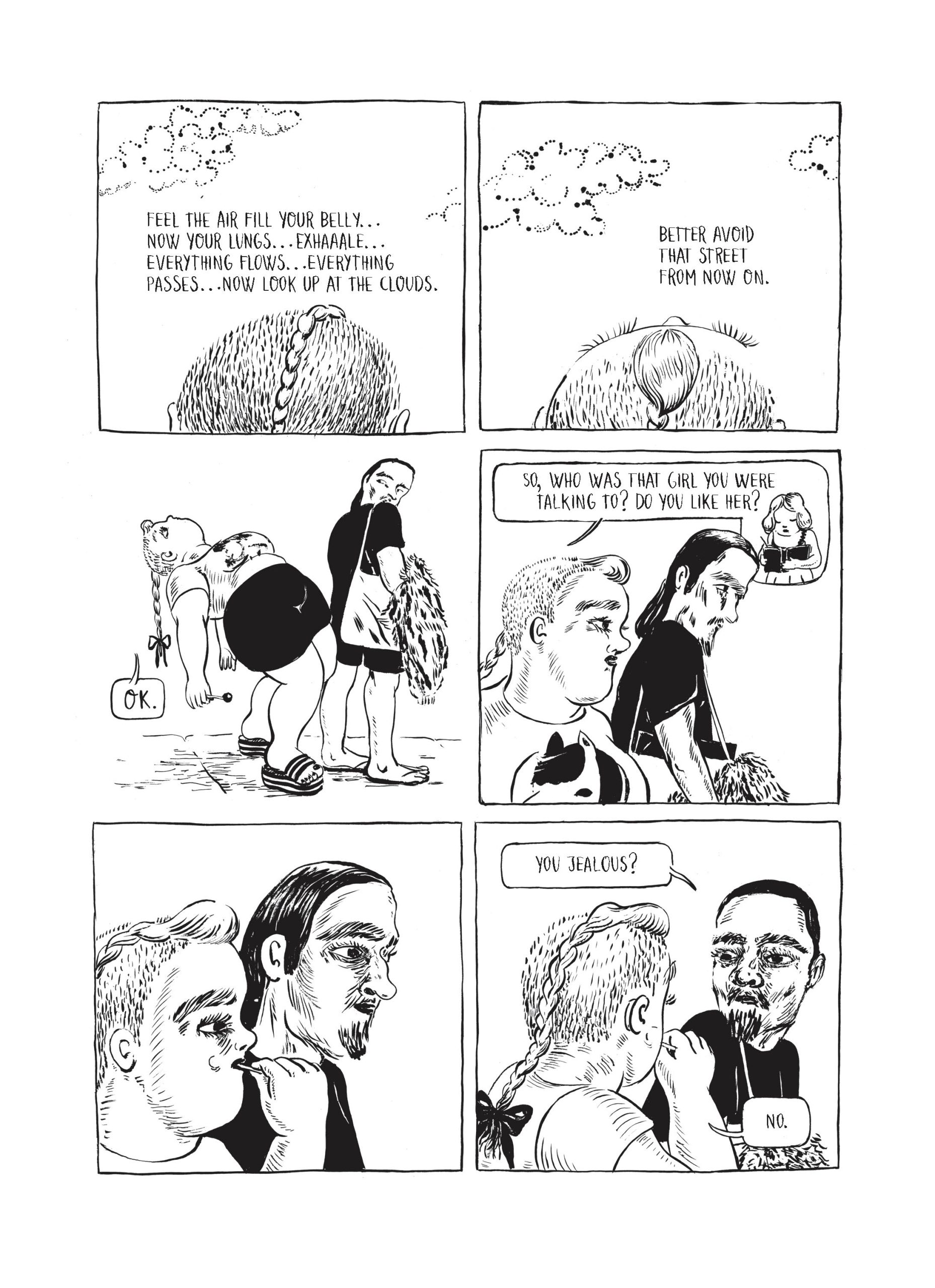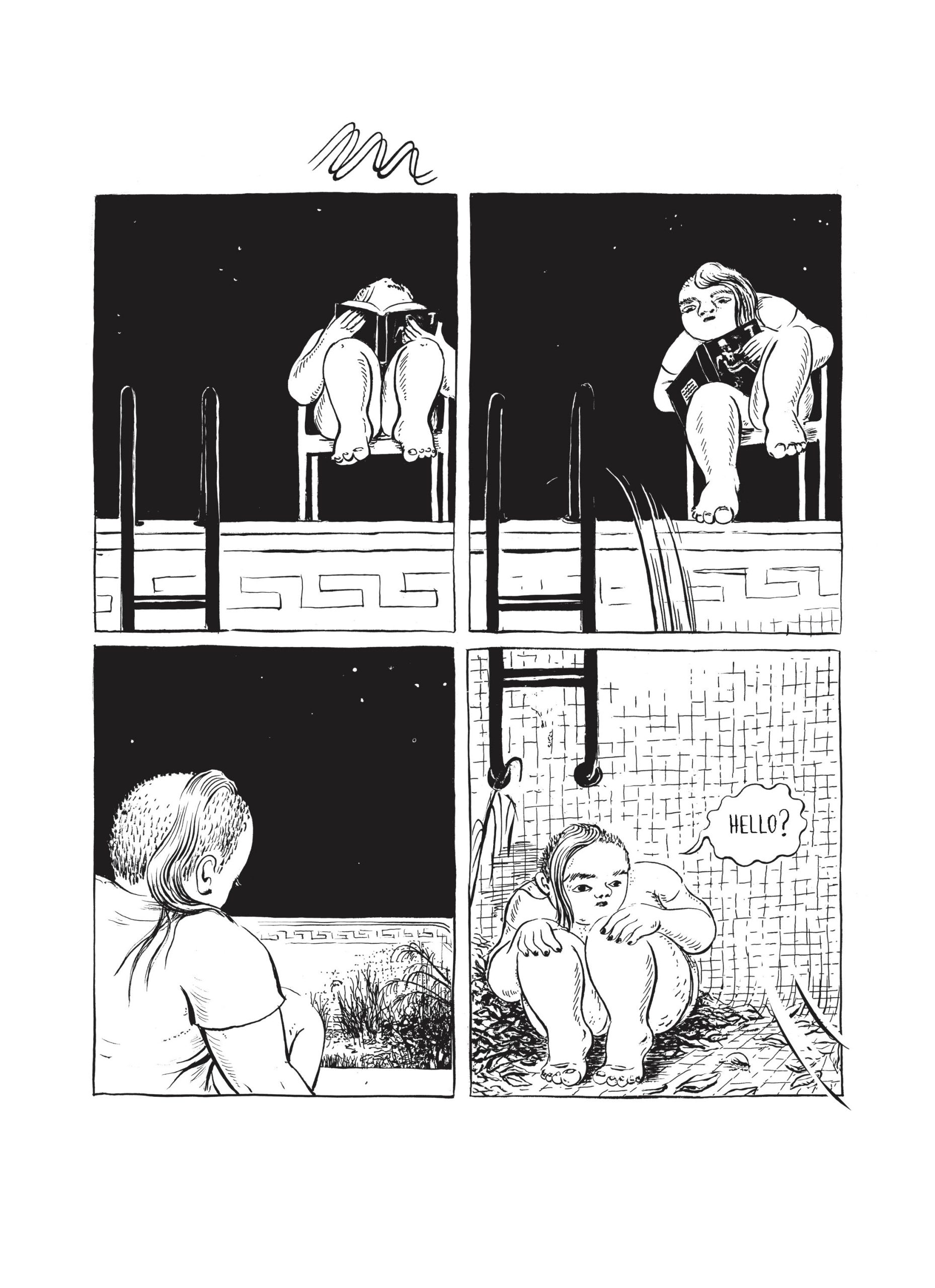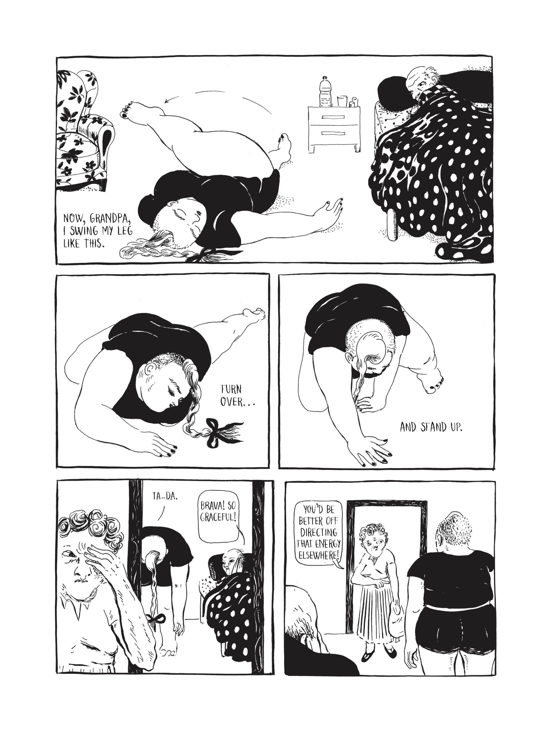 Lola Lorente’s slick black inkwork feels sophisticated and voluptuous, and her rendering of townsfolk and their customs is a sensorial delight. Her devoted attention to fabric textures, body shapes, and one-of-a-kind faces brings this cast of oddballs and weirdos, sometimes verging on the grotesque, fully to life.Â