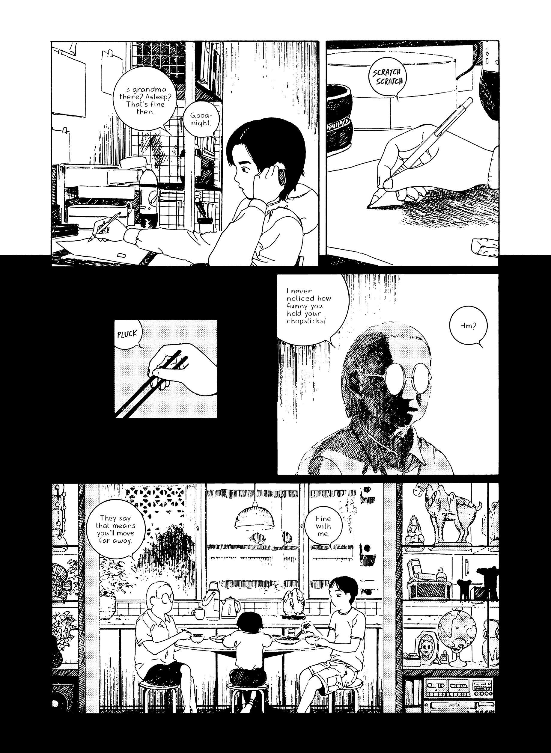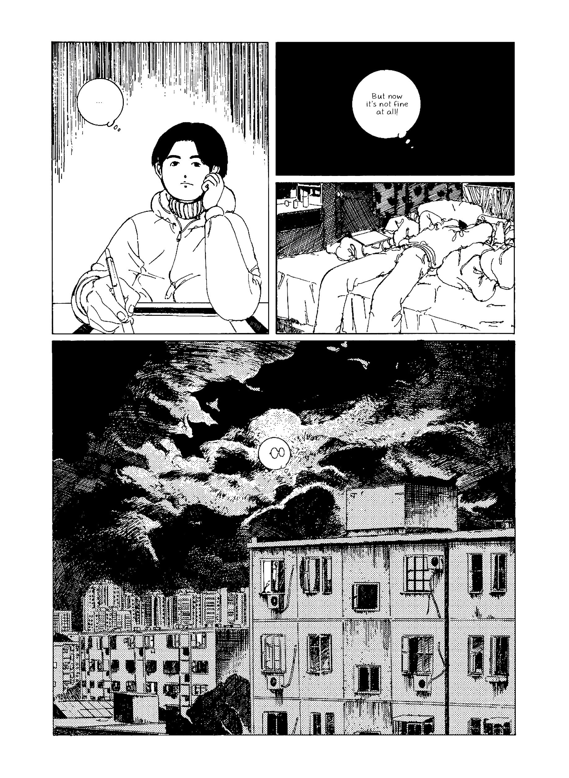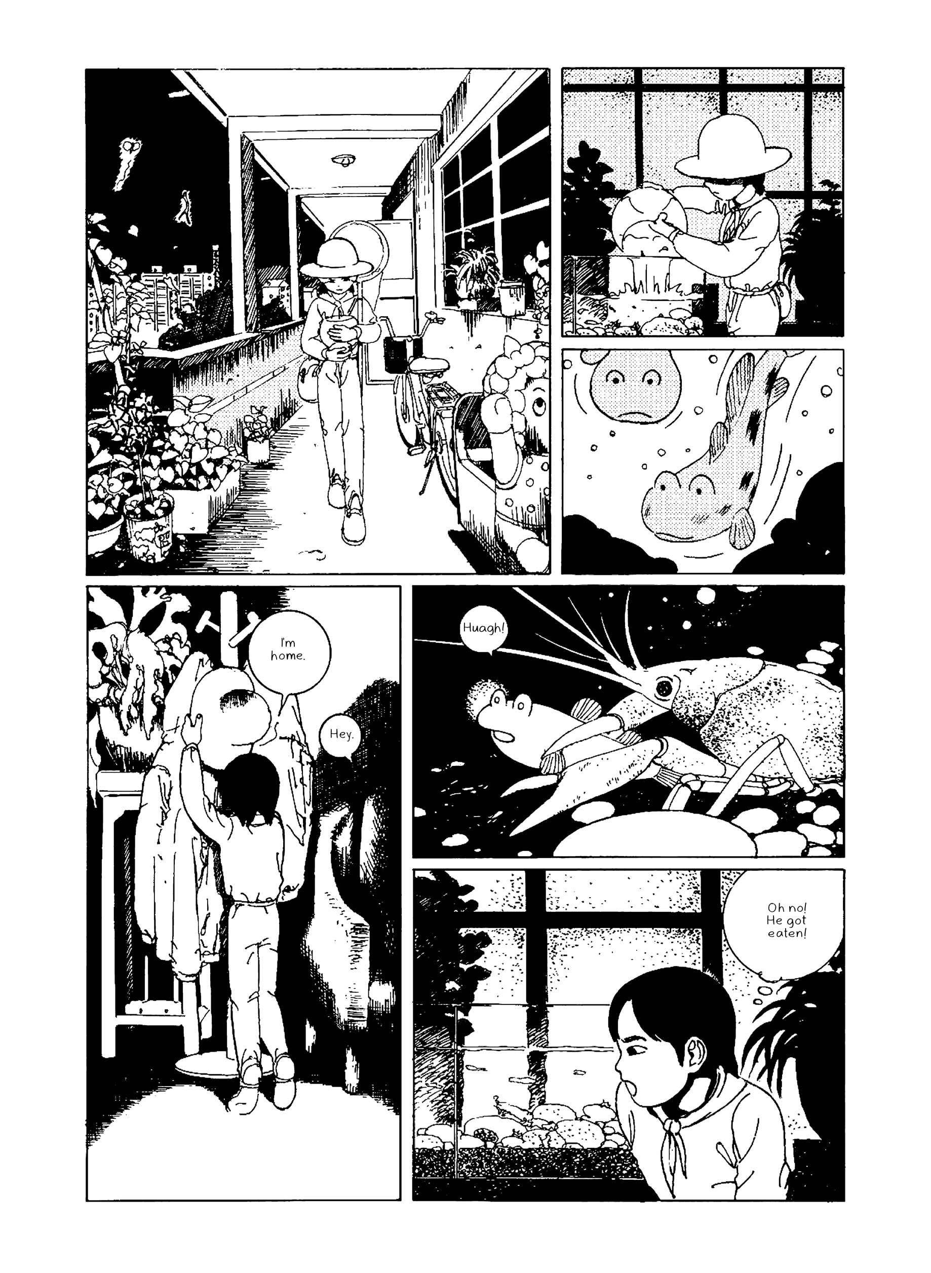 In Night Bus, a young woman wearing round glasses finds herself on an adventurous late night bus ride that constantly makes detours through increasingly fantastical landscapes. Meanwhile a young cartoonist returns home after art school and tries his hand at becoming a working artist while watching over his aging grandmother whose memory is deteriorating. Nostalgic leaps take us to an elementary school gymnasium that slowly morphs into a swamp and is raided by a giant catfish. Beetles, salamanders, and bug-eyed fish intrude upon the bus ride of the round-glasses woman as the night stretches on. Night Bus blends autobiography, horror, and fantasy into a vibrantly detailed surreal world that shows a distinct talent surveying his past.