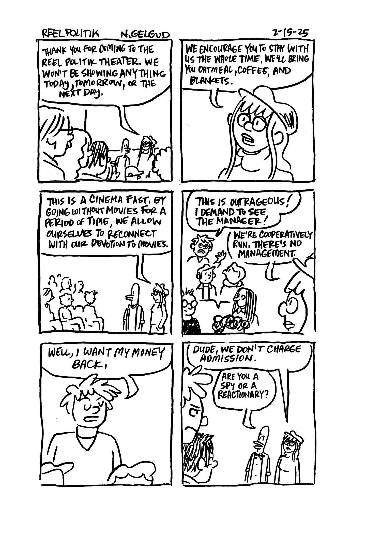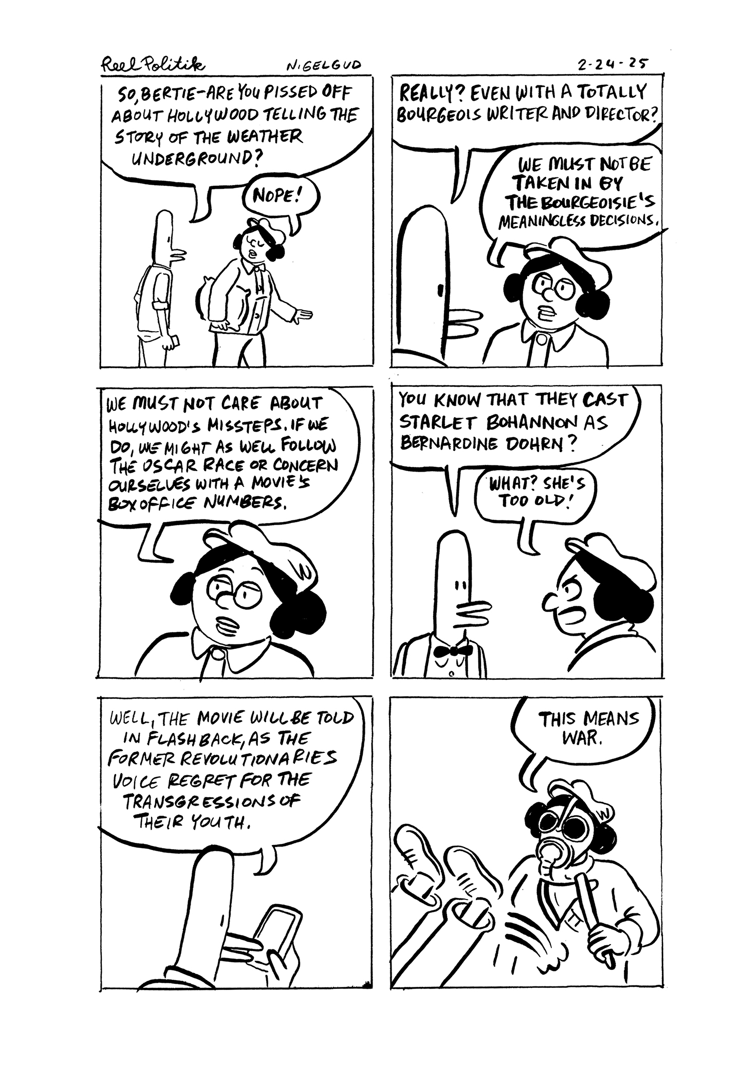 With his trademark slapstick zingers, Gelgud lovingly skewers leftist radical politics while simultaneously illustrating how late stage capitalism has made ethical decision making fraught with compromise. At once a celebration of what makes Hollywood and independent local cinema great and a call to arms to protect it.
