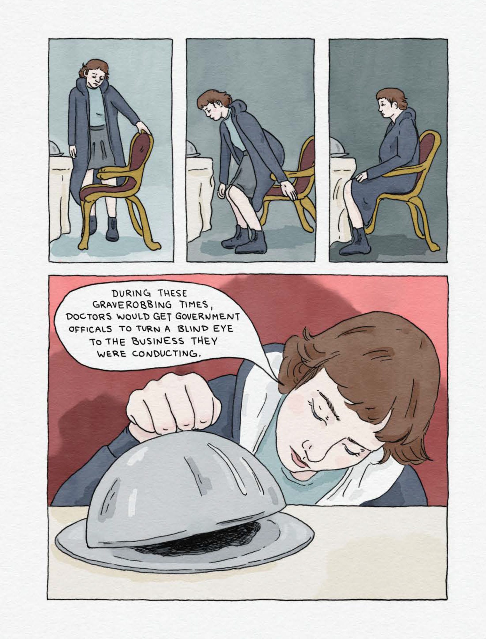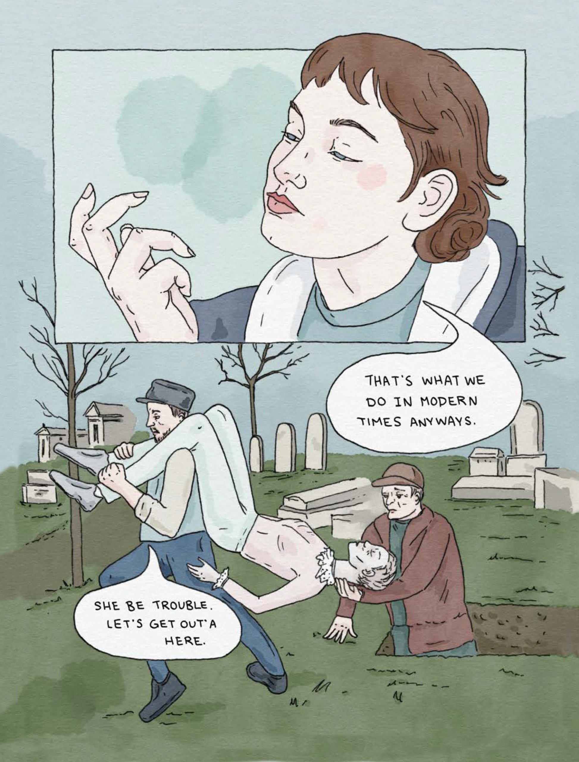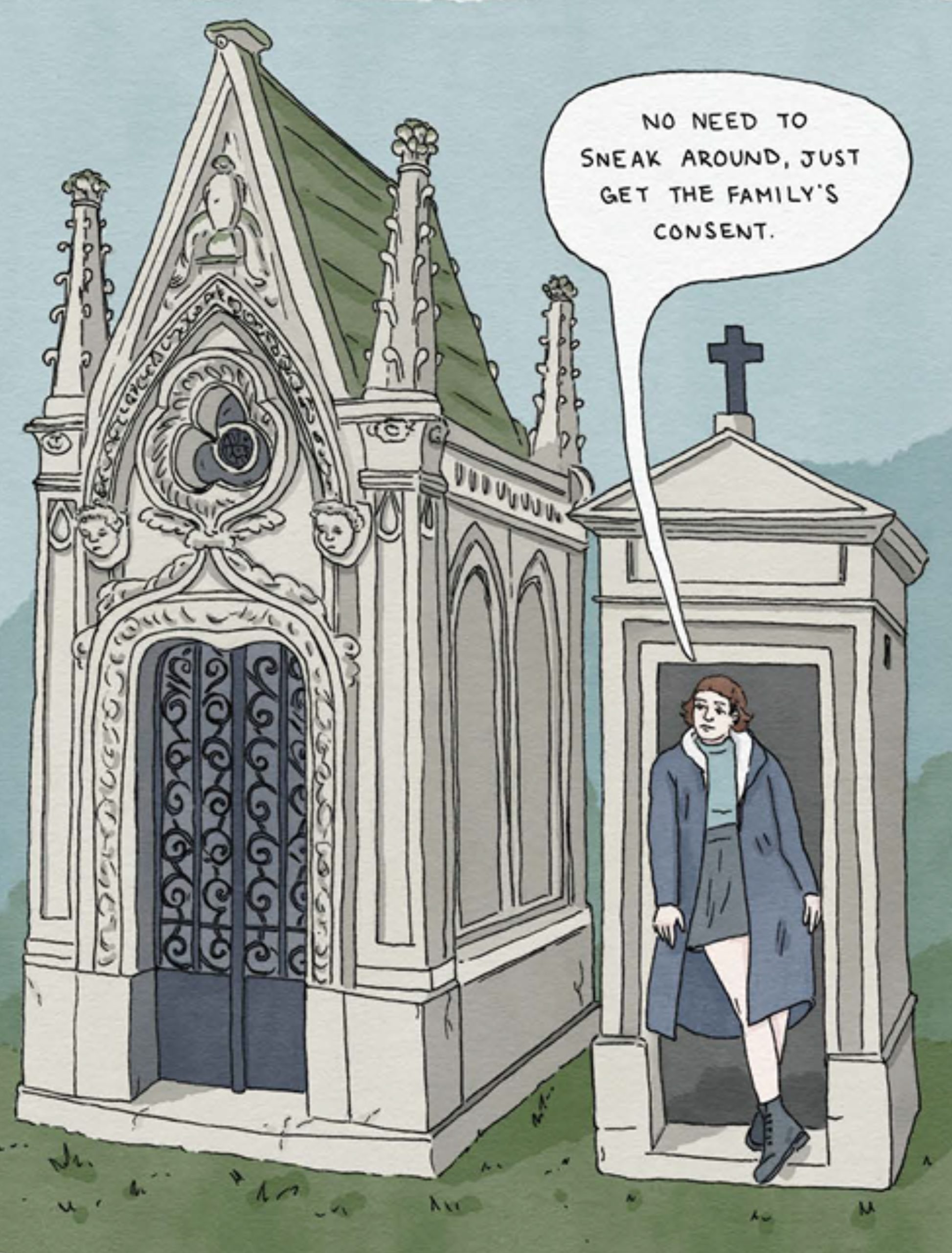 Opioids and Organs is a damning critique of an industry that takes advantage of society’s outcasts. It is also the graphic novel debut of O’Neill herself, who weaves together a dramatic personal history with that of how humanity made its scientific advances. A muted yet striking pastel palette and a dolllike fantastical elegance belie both the gruesomeness of the book’s topic and the rage of its author.