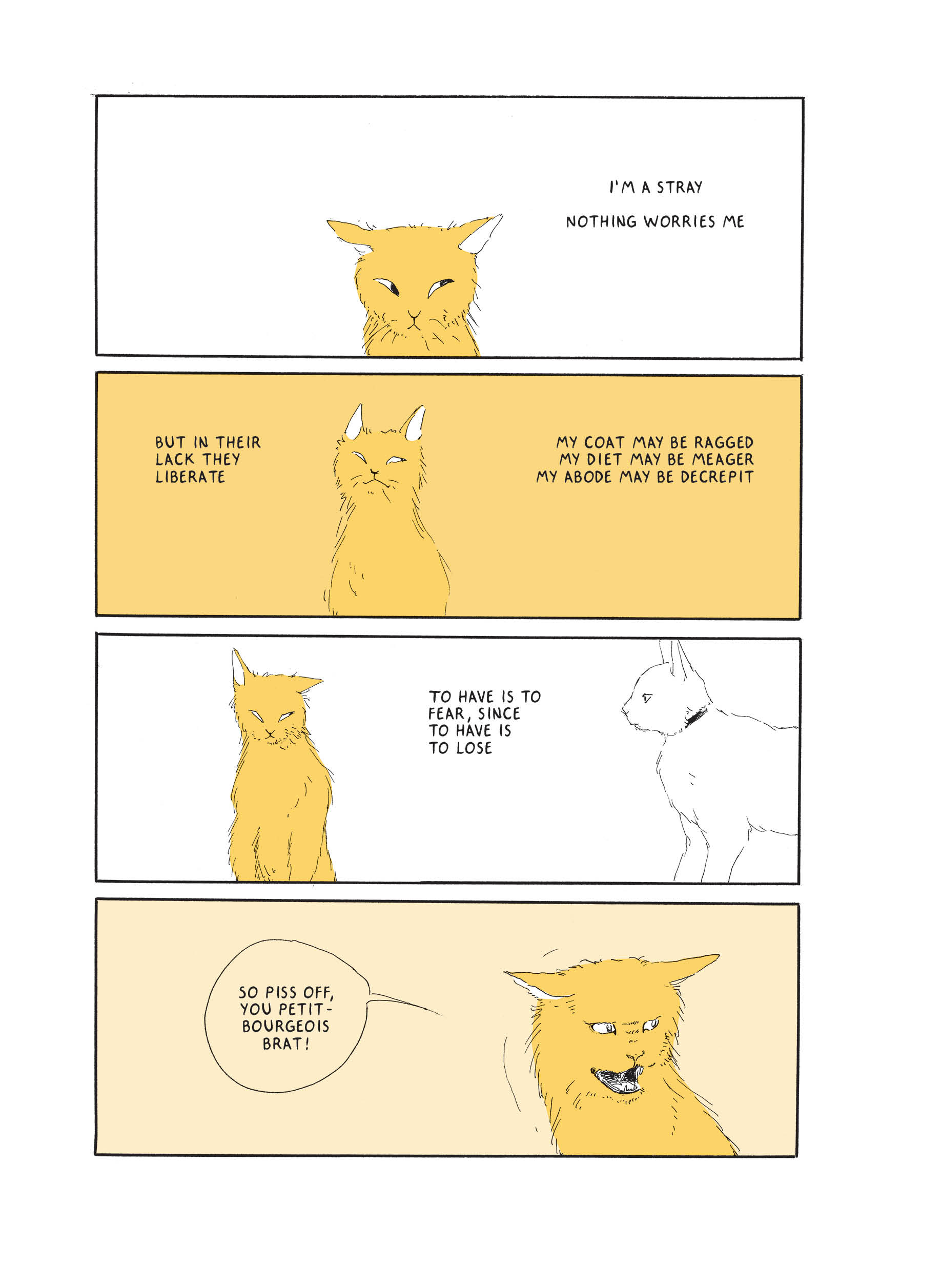 With those piercing eyes and flicks of the tail, house cats observe domesticity poetically, and with sass.