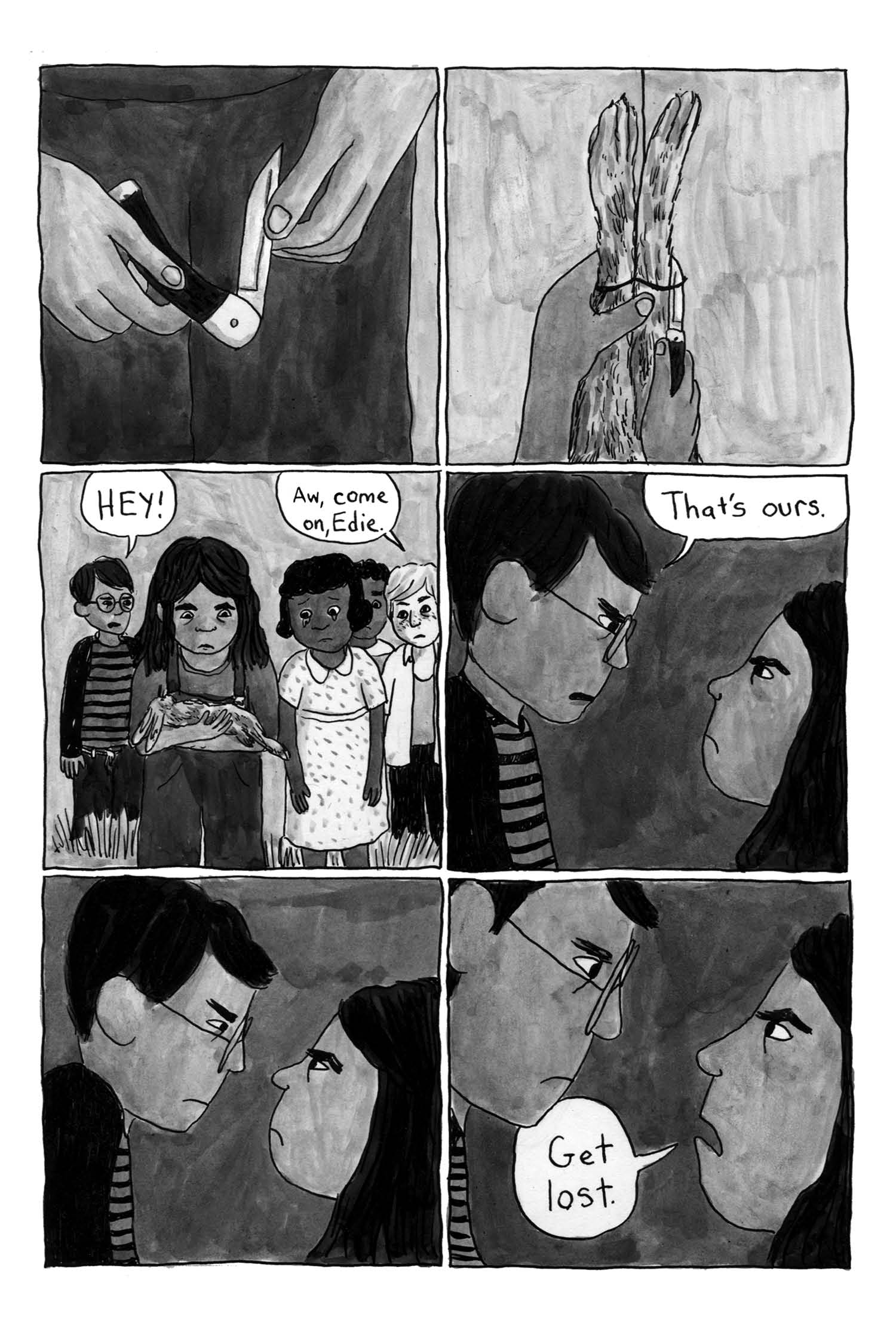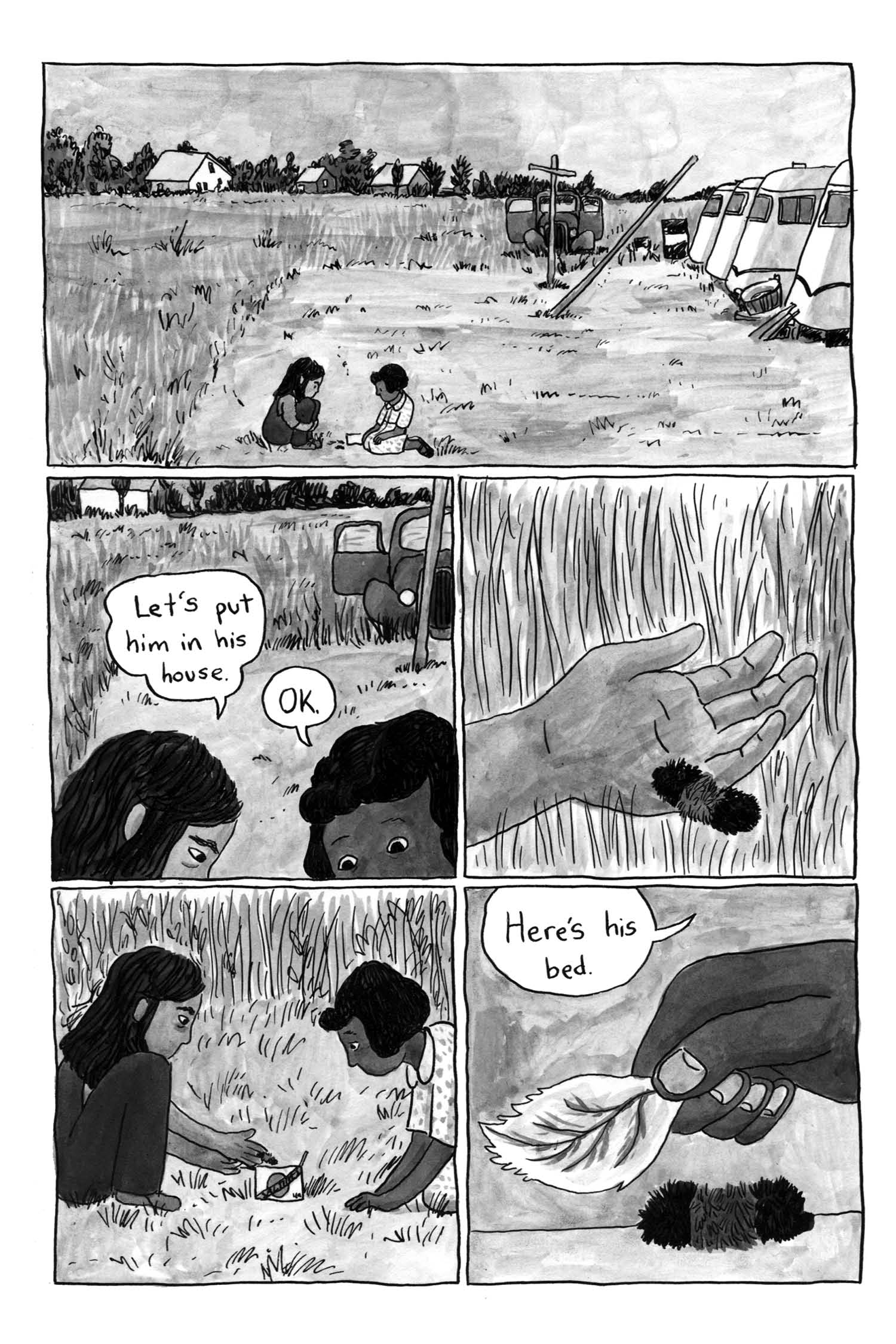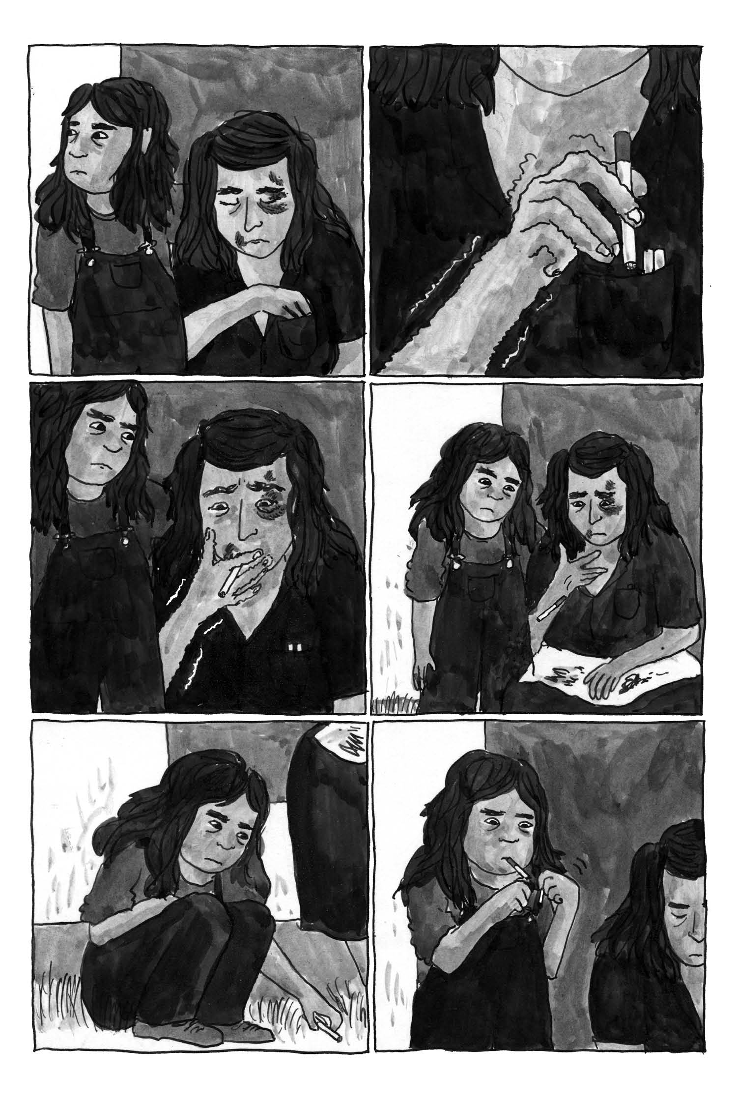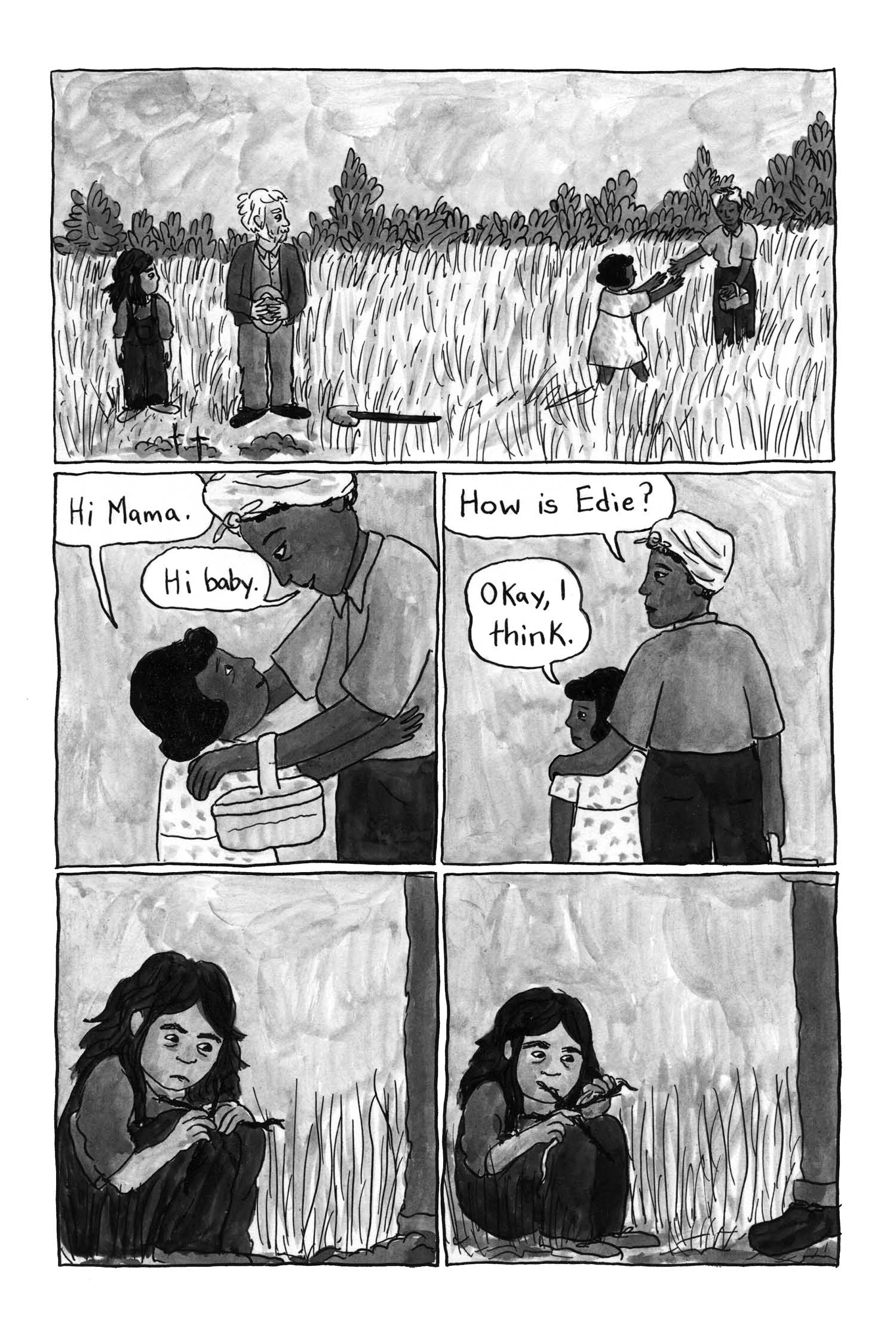 A work of fiction inspired by her grandfather’s writing and childhood, Melissa Mendes’ pastoral cartooning captures the openness of rural America—soft breezes, tall grass, whirring grasshoppers, rainstorms, skinned knees. But all the while, the cruelty, the disappointment of man lurks behind the barn and in the trailer. Life can be stubbed out as easily as a cigarette tossed in the dirt. One moment all focus, next, gone without a thought. Will Edie find herself repeating a cycle or will she be free like she felt as a child?