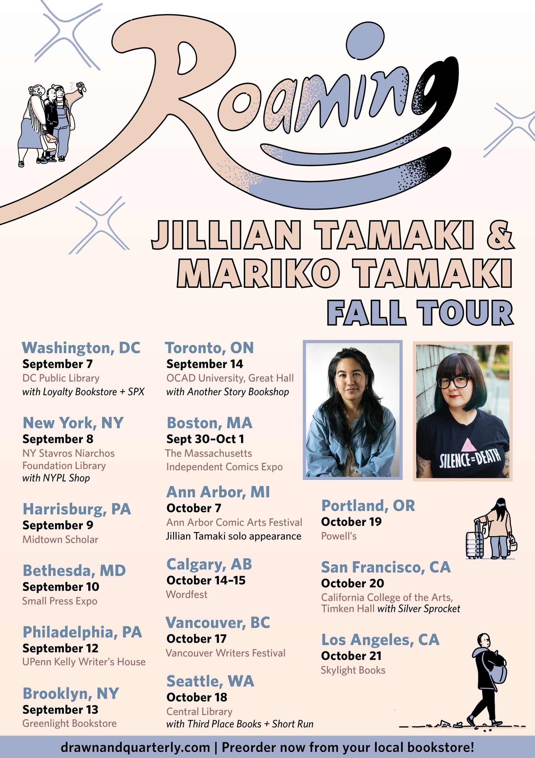 With the release of Roaming by Jillian and Mariko Tamaki this fall, the award-winning duo behind Skim and This One Summer are going on tour! They’ll be stopping in multiple cities across the US and Canada to celebrate the release of the graphic novel that Publishers Weekly calls “an elegant study of young women caught between the comforts of the past and the promise of what comes next.”